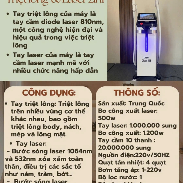 Thiết bị này là máy triệt lông công nghệ Laser Diode 808nm.